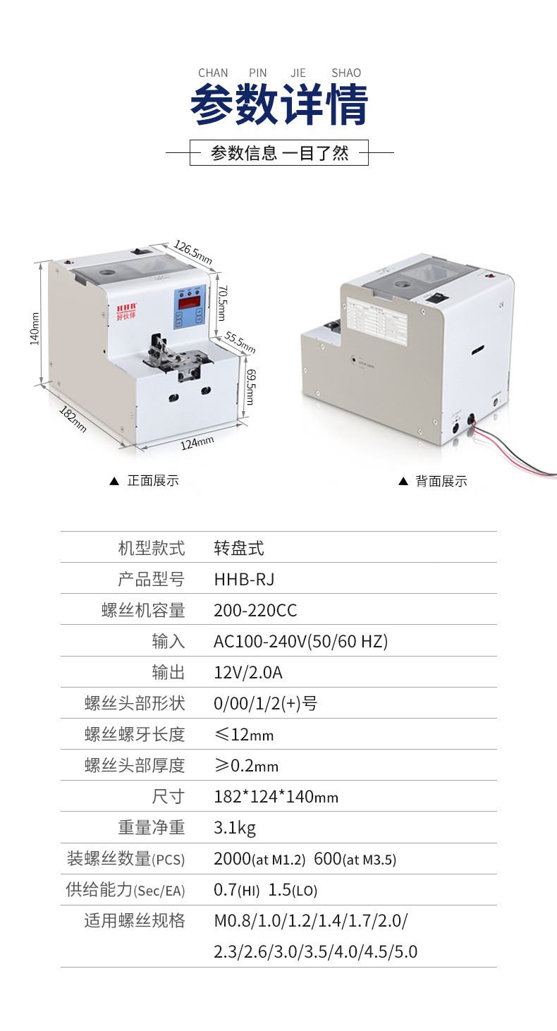 ●白色面板机身、十字分料机构、定位点精准、单颗出料取料、输送螺丝稳定、使螺丝不易滑落、卡料、粘接等.●螺丝使用范围广、螺丝出料顺、速度快、精密度高、稳定性强。